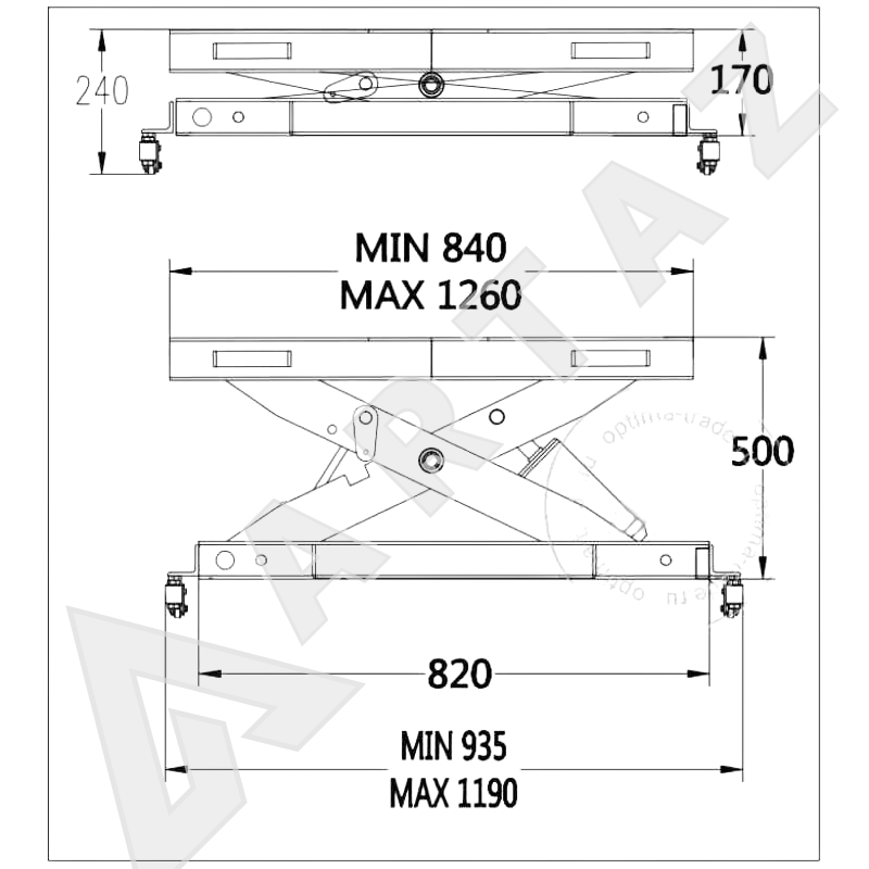 - Раздвижная длина: 840–1260 мм; колея траверсы: 935–1190 мм — высокая совместимость с разными осями