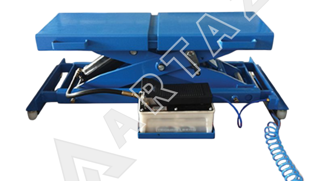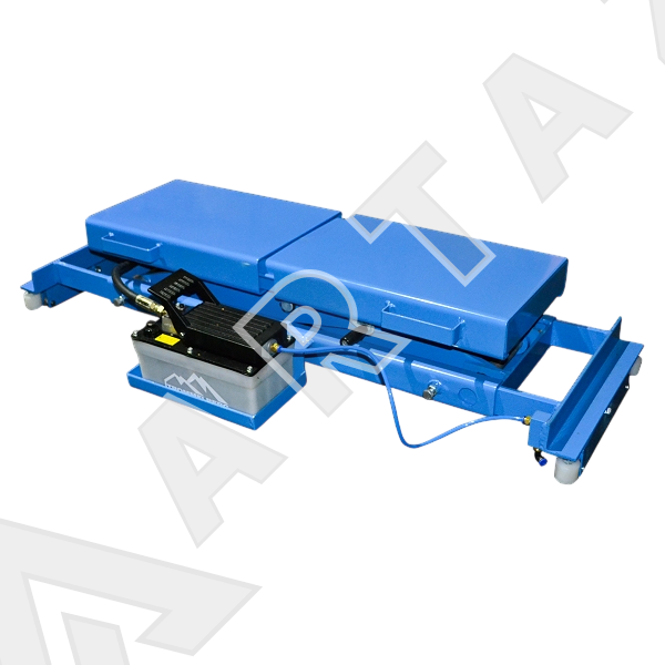 - Тип привода: пневмогидравлический; рабочее давление воздуха 6 бар — плавный и контролируемый подъём