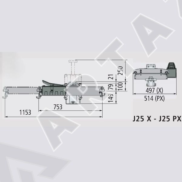 - Колея траверсы: 753–1153 мм; ширина платформы: 753 мм