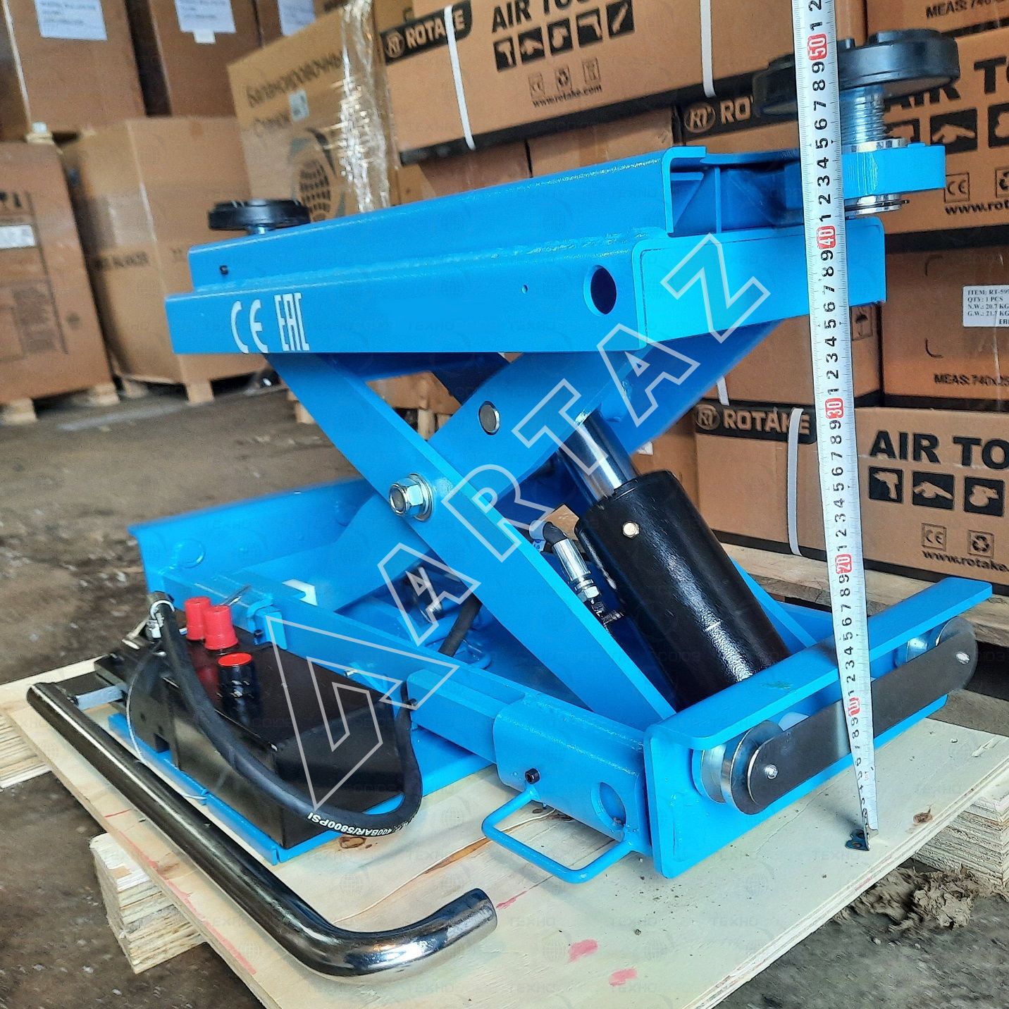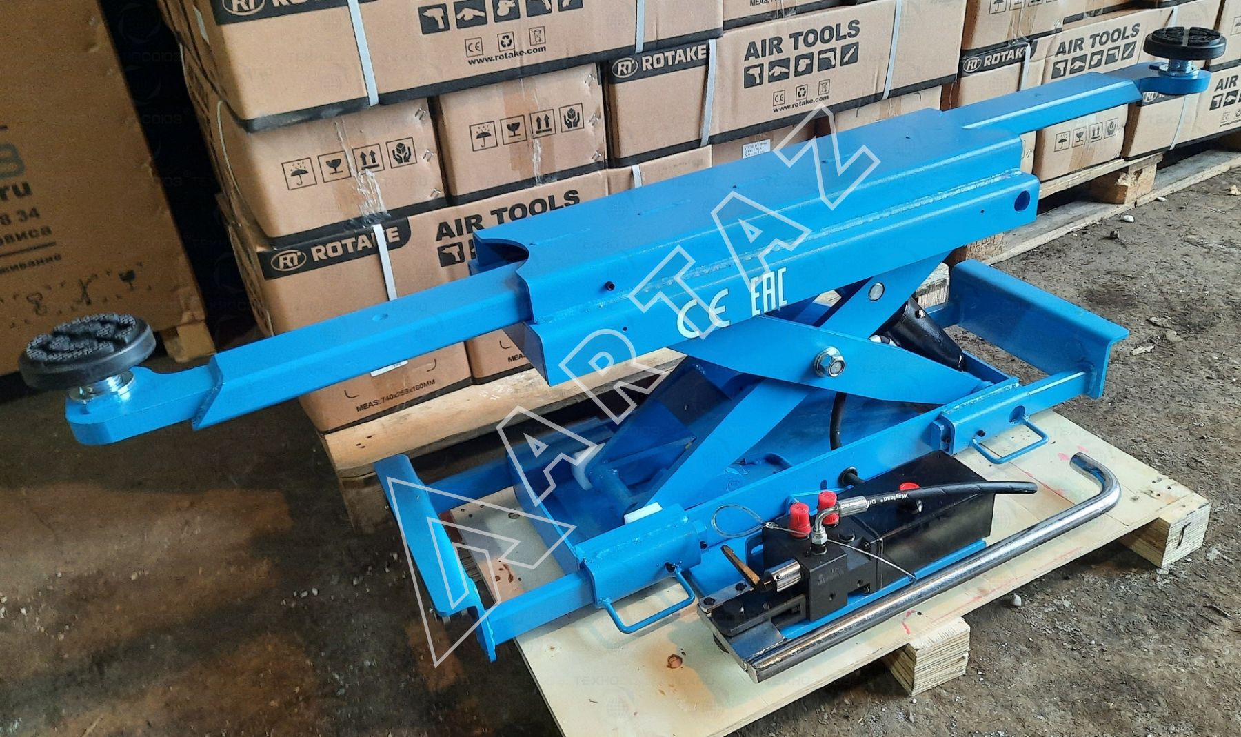 - Высота подъёма: 485 мм; минимальная высота подхвата: 215 мм — работа с низкими авто