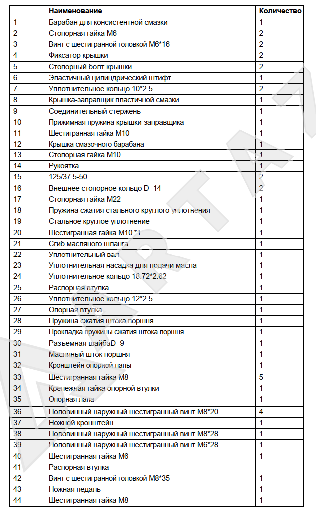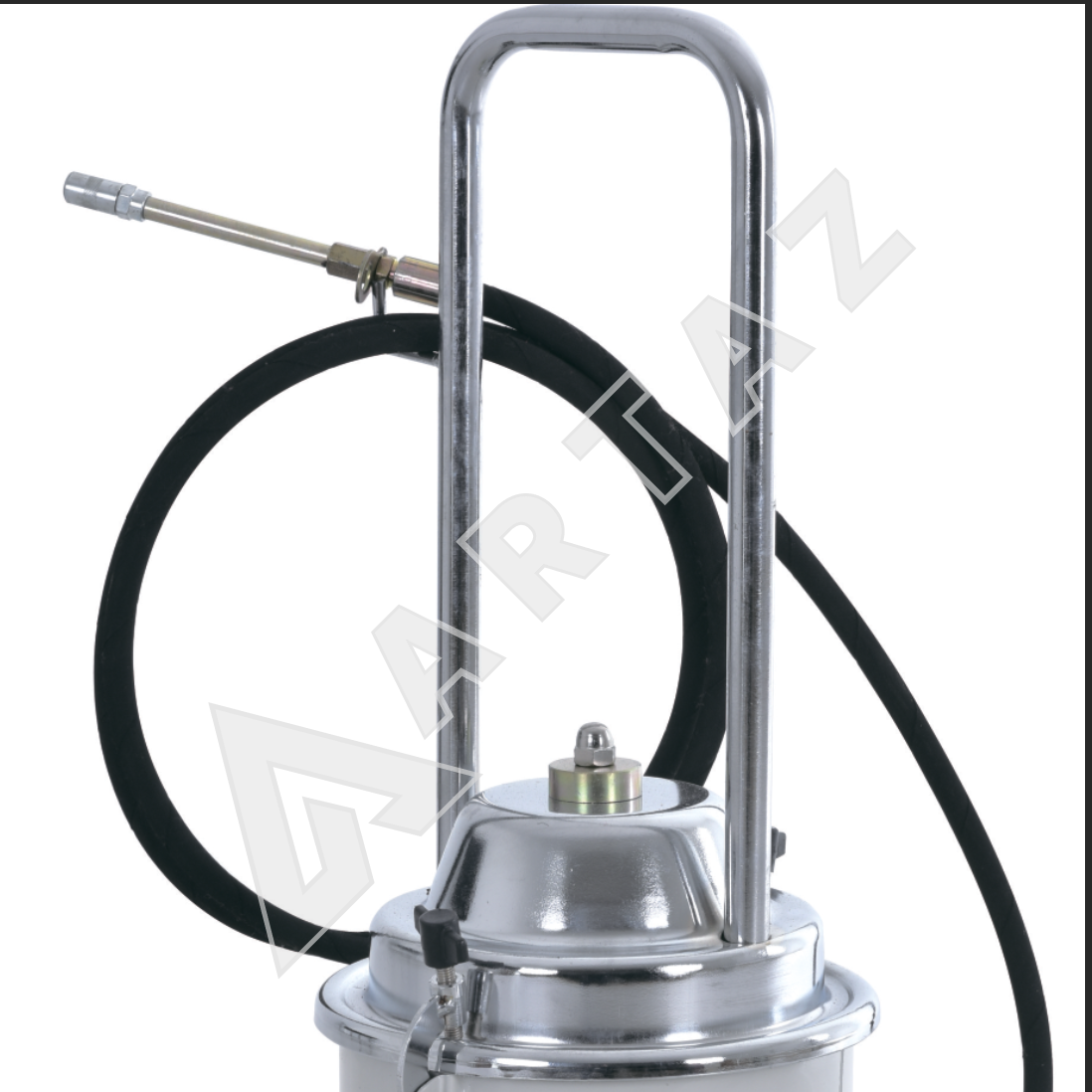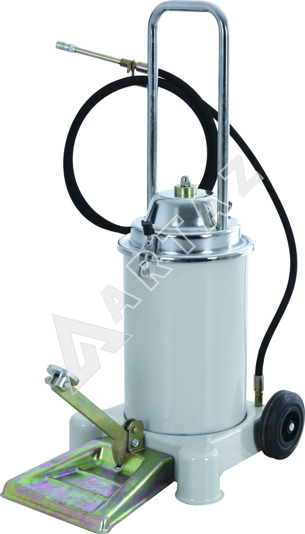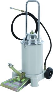 Установка на колесах, для подачи консистентных смазок (солидолонагнетатель) с ножным приводом который освобождает руки при работе. Позволяет быстро смазать под высоким давлением узлы любого автомобиля или механизма. Оснащено прижимной мембраной, которая защищает смазку и способствует долговременному поддержанию ее свойств Объём бака 13 кг. Пистолет для консистентных смазок с жёстким наконечником и шлангом 4 метра. Производительность 250-300 гр/мин.