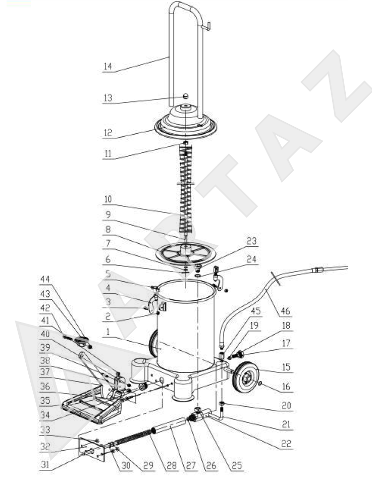 Установка для подачи консистентных смазок с ножным приводом 13 кг, DMECL, K50400