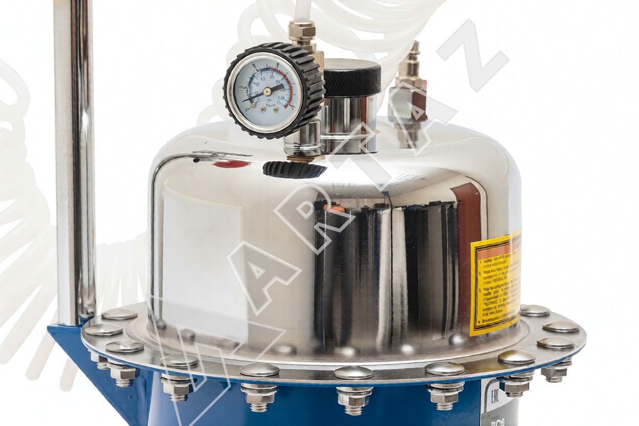 - Надежный пневматический привод с регулируемым рабочим давлением от 0,7 до 3 бар для точного контроля процесса прокачки