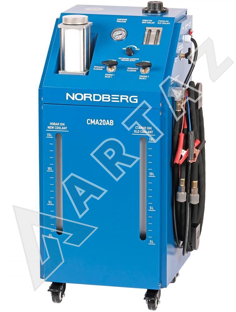 Установка для промывки и замены охлаждающей жидкости 12В, насос до 3.7л/мин, 2х15 л, Nordberg CMA20AB