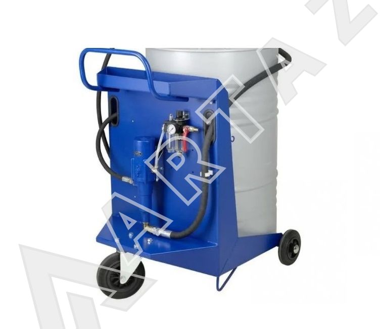 - Тележка 17009, трехколесная с держателем шланга и пистолета, с маслосборником и сливом для масла