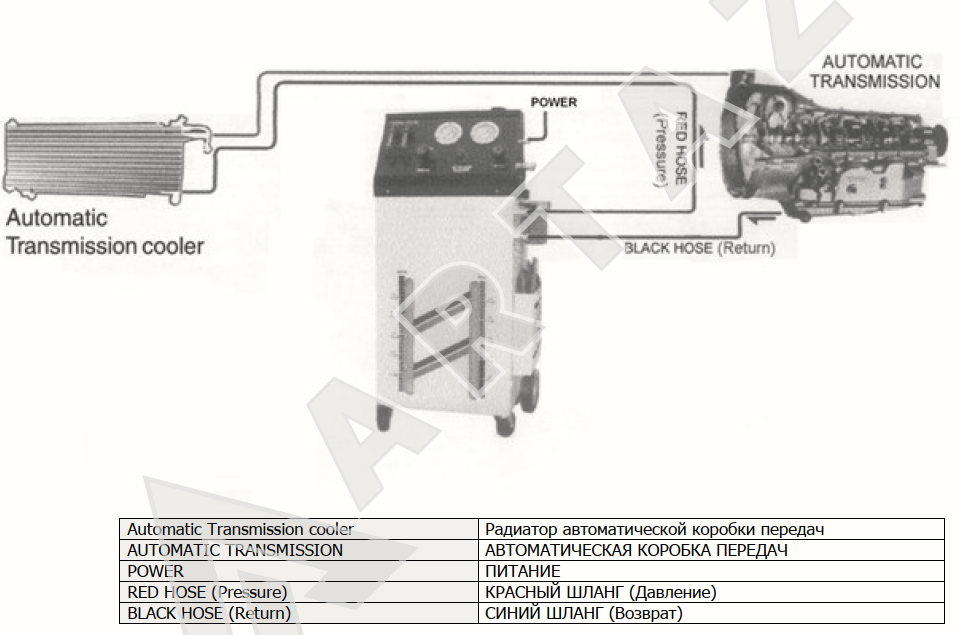 - Длина впускных и выпускных шлангов 2,5 м обеспечивает удобство подключения к АКПП разных моделей и расположений.
