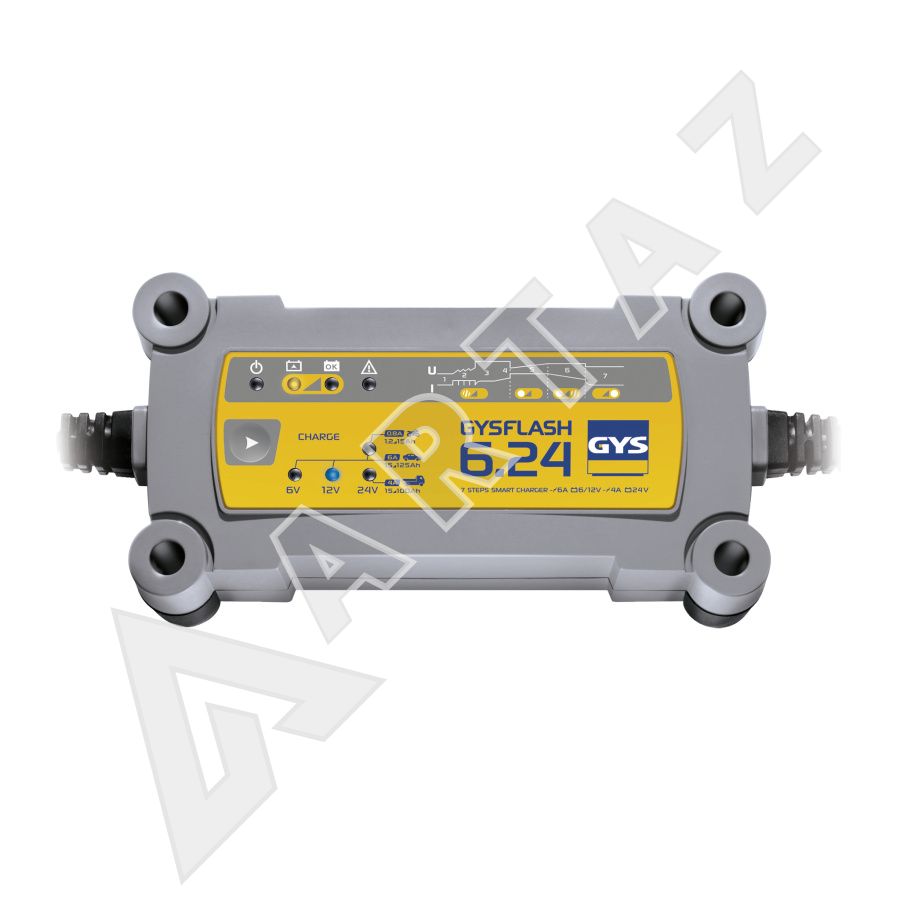 Зарядное устройство GYSflash 6.24 предназначено для эффективной зарядки аккумуляторов с напряжением 6, 12 и 24 В. Оно отлично подходит для владельцев и специалистов, занимающихся обслуживанием аккумуляторов мотоциклов, легковых и грузовых автомобилей, а также микроавтобусов и спецтехники.