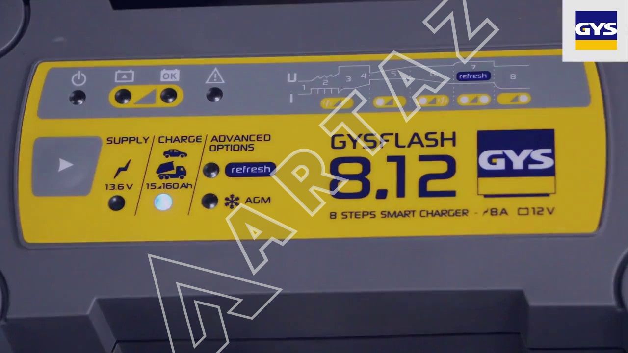 Зарядное устройство 130Вт GYS GYSflash 8.12 029385, ток заряда от 0,1 до 8А, обслуживает аккумуляторы WET