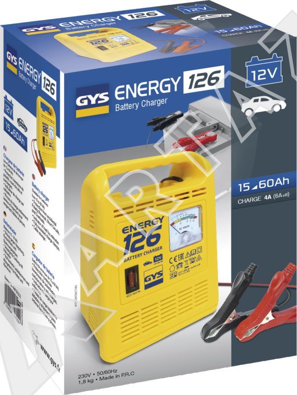 Зарядное устройство GYS 126 оснащено питанием от сети 220 В с частотой 50/60 Гц и обеспечивает регулируемый ток заряда от 2 до 6 А, что позволяет точно подстраивать процесс зарядки под емкость аккумулятора. Встроенный вольтметр контролирует напряжение аккумулятора во время зарядки. Надежные защиты от короткого замыкания, перегрева и переполюсовки гарантируют безопасность эксплуатации.